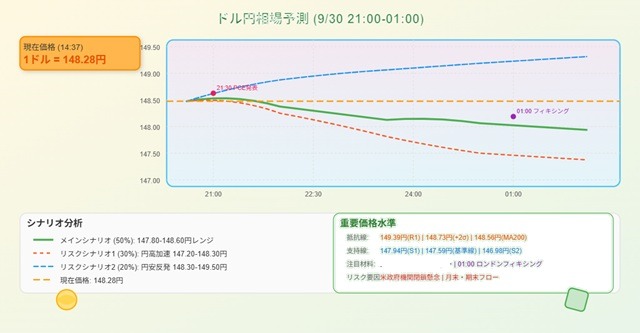 ドル円相場の分析と予測(2025年9月30日 午後9時~午前1時)