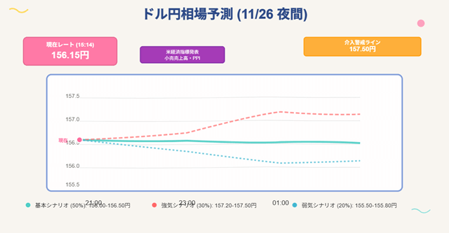 ドル円相場の分析と予測(2025年11月26日 午後9時〜午前1時)