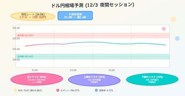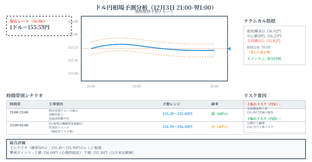 ドル円相場の分析と予測(2025年12月03日 午後9時~午前1時)